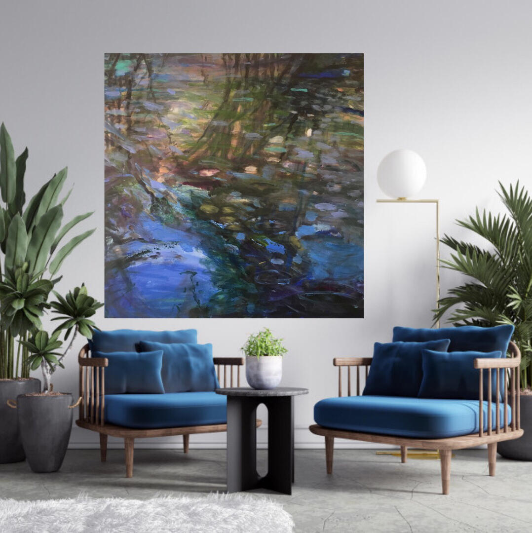 Water, thou hast no taste, no color, no odor; canst not be defined, art relished while ever mysterious. Not necessary to life, but rather life itself, thou fillest us with a gratification that exceeds the delight of the senses. ― Antoine de Saint-ExuperyHer abstract style is heavily influenced by her experiences in nature, particularly her fascination with the energy and movement of the natural world. She often employs a layered approach to painting, building up multiple layers of colour and texture to create depth and complexity in her work.